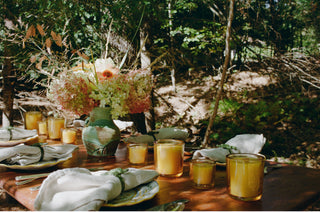 The candle vessels are made from recycled glass and are fully recyclable after use. They can also be repurposed as tumblers or, better yet, reused indefinitely with our candle refills, votives or tea lights!